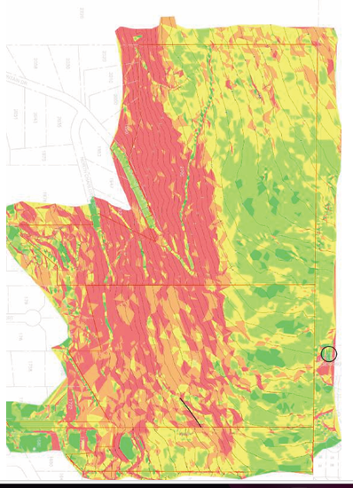 Some road sections are steep but are allowable under village limits. A detailed access design plan is set to be required at subdivision stage.