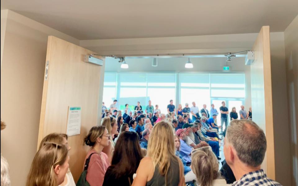 The Village of Anmore’s council chambers erupted in cheers and claps after a resident read Moore’s message to a crowd of hundreds of residents.