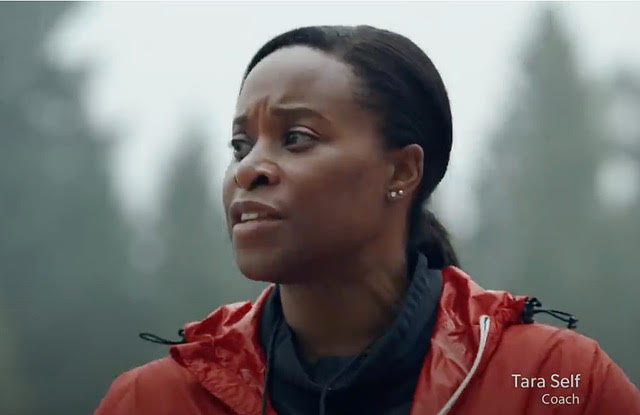In the ad, filmed last September, sprinter Jerome Blake, a member of Canada’s Olympic team who will race in the men’s 4X100 m relay in Tokyo, presents Self’s words back to his coach — a two-time Olympic sprinter herself — in giant, chunky white letters sitting on a black stand taking up the southeast corner of the track, near the Cheetahs’ fieldhouse. It’s presented as an emotional moment, and in the commercial, Blake rubs at his eyes while sharing it with his coach.