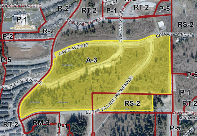 The land in question is south of David Avenue and north of Fremont Park. As the municipality owns the land, the applicant before Coquitlam city council was the City of Coquitlam.