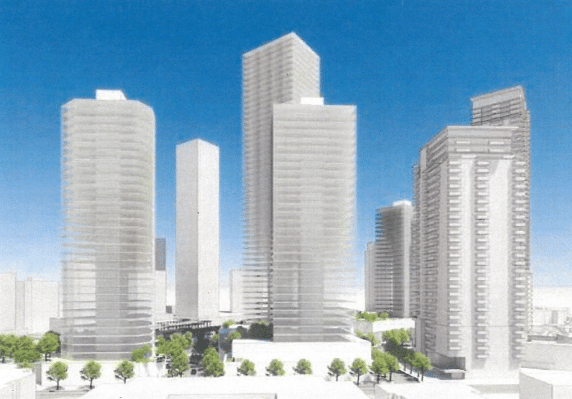 The project includes six towers ranging from 28 to 53 storeys totalling 2,212 units of housing. At total build-out, the applicant estimated the project would house 4,648 people.