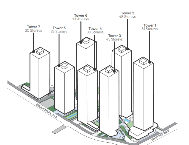 With seven towers ranging from 30 to 51 storeys, the project is set to include approximately 1,801 strata units and 656 rentals.