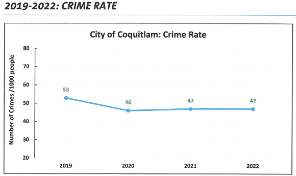 There were 47 crimes per 1,000 Coquitlam residents in 2022, “which remains near the historic low,” stated the RCMP report, which was presented to Coquitlam council on Monday. The city’s crime rate was at its lowest point in 2020 when there were 46 crimes per 1,000 residents.