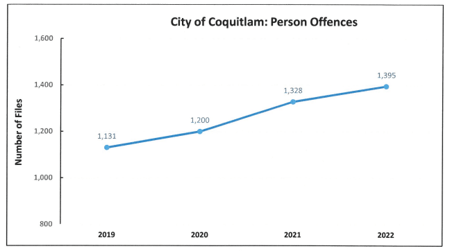 There were 1,395 persons crimes in Coquitlam in 2022, approximately 45 percent of which were assaults.