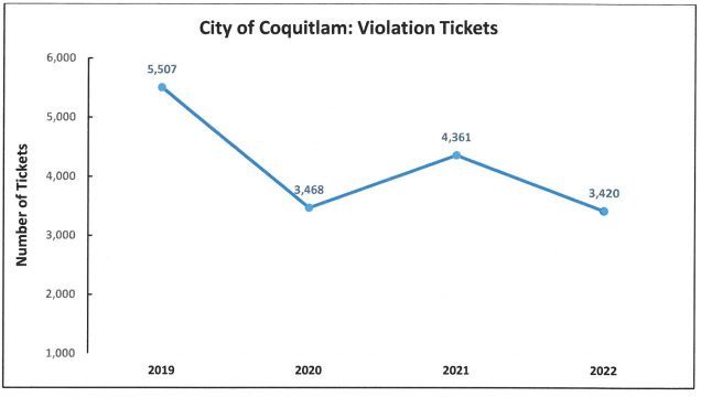 Police handed out approximately 21 percent fewer traffic tickets in 2022 than in 2021.