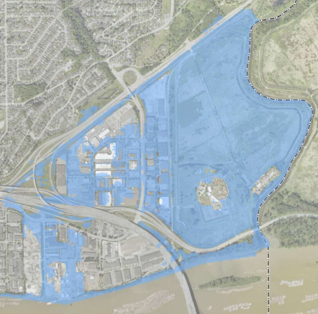 The area around ƛ̓éxətəm and the Mayfair Industrial Park near United Boulevard are at particular risk of flooding, according to a 2017 assessment.