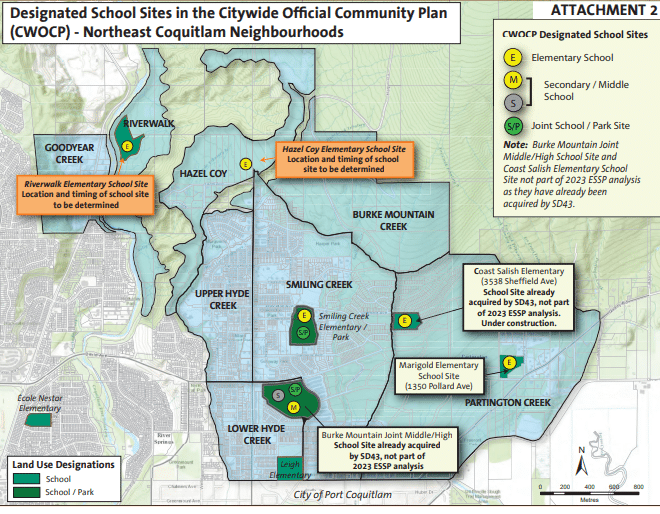 The district is also mulling three schools in northeast Coquitlam: Riverwalk Elementary, Hazel-Coy Elementary, and Marigold Elementary.