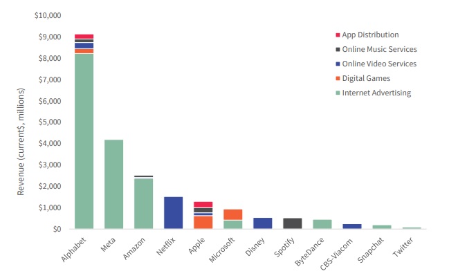As of 2023, Alphabet (Google), Meta (Facebook), and Amazon control 89 percent of Canada’s $16.6 billion online advertising market, while Canadian media companies capture only six percent, according to a report by the Global Media and Internet Concentration Project (GMIC).