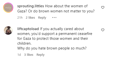 Morrison said one Instagram comment by a Free Palestine BC member – which he took as a veiled threat – stated: “Imagine if the white baby in your hands was killed. Your opinion would change quickly because she’s white.”