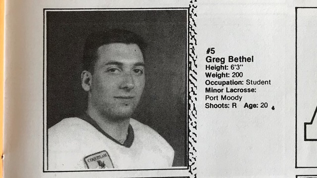Bethel, who grew up less than 10 minutes away in the Port Moody’s College Park neighbourhood, banged around the local lacrosse box at Westhill Park, began Mini Tyke when he was four or five years old and first encountered his future Adanacs teammates as crosstown opponents. They got together as Peewees and bonded playing Intermediate and Junior in the late 1980s.