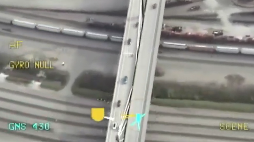 Surveillance video released by the police shows the motorcyclist switching from lane to lane while zipping past vehicles on the bridge.