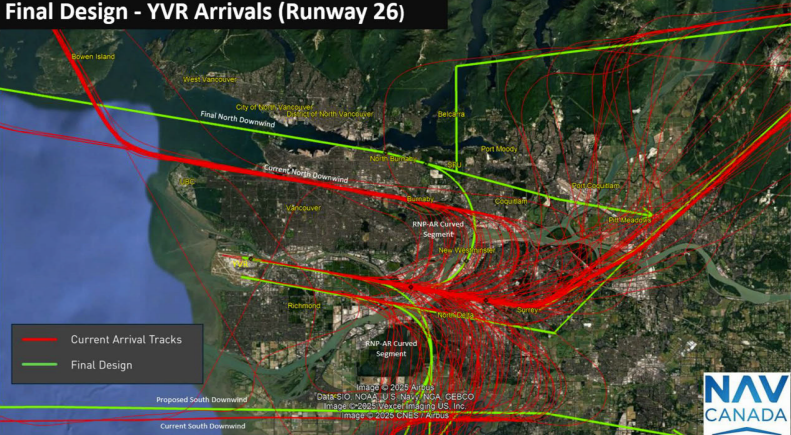 However, following community outcry, NAV Canada has amended those plans, keeping some planes over Burrard Inlet for longer and turning other planes “before they even get to Coquitlam,” explained NAV Canada director of industry relations Jonathan Bagg.