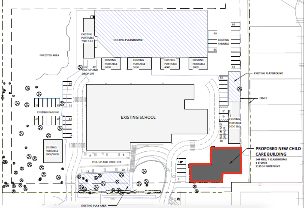 The two-storey building would be on the southeast corner of the site, west of Cedar Drive, and host up to 144 kids.