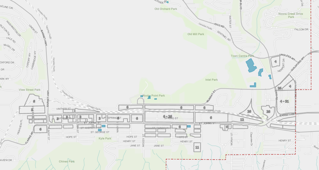 A TOD already exists in the area – contained between St. Johns Street to the south, the SkyTrain tracks to the north, Buller Street to the east, and Moody Street to the west – but the new proposed radius would significantly expand its scope.