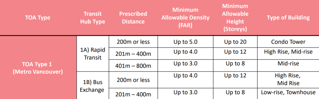 These TOD areas would come with a set of provincial standards, forcing minimum standards for height and density allowances.