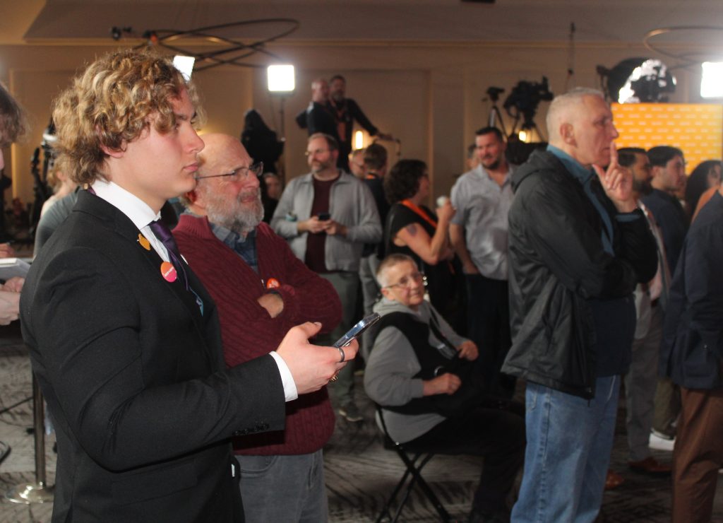 At an NDP election results party on Monday night in Burnaby, people cheered whenever a NDP candidate came ahead in the polls (like Lori Idlout in Nunavut). Some wore the bright NDP orange, and the mood was relatively cheerful, with people chatting and laughing.