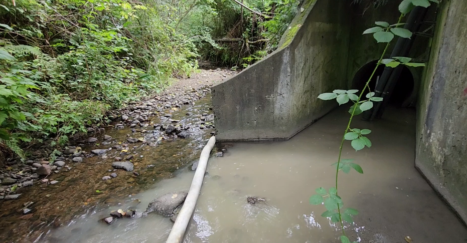 In the summer of 2024, a contractor doing excavation work sent dirty runoff from their site into a catch basin. The spill ended up in Stoney Creek and turned a portion of the water slate grey.