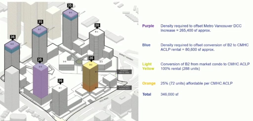 “The CMHC’s ACLP is the only viable path forward in today’s financial environment,” Johnson said. “We have two options in front of us: additional density to offset the cost, or decrease the amenity package we previously agreed to with the community. We do not want to go down that path.”