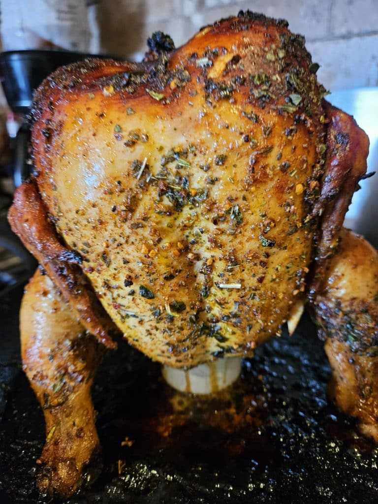 Once done, allow the chicken to rest for one hour before slicing and devouring.